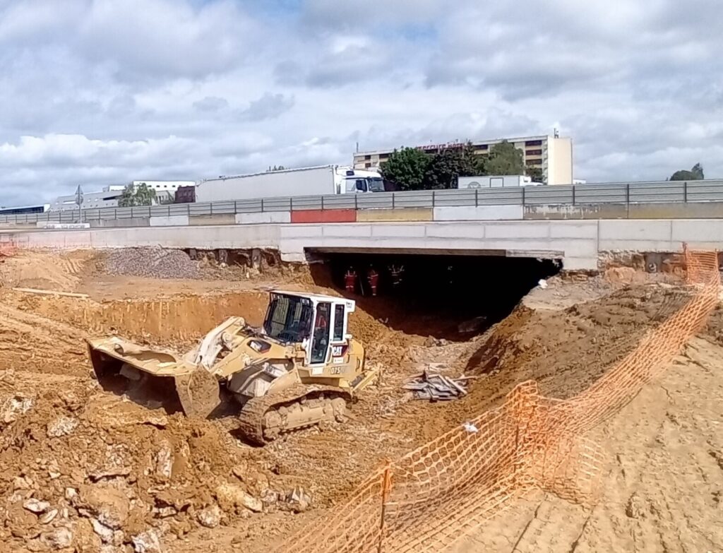 Désormais, place à l’habillage de l’ouvrage avec la réalisation d’un parement léger type pierres de meulières. A terme, le passage inférieur sera doté de deux voies de circulation mais aussi d’aménagements dédiés aux piétons et aux cyclistes.