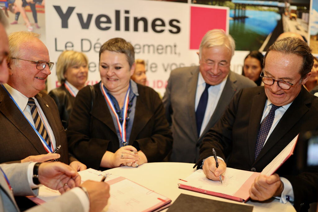 Après le passage des deux présidents et des personnalités dans les différents stands, une convention PriorYvelines, portant sur l’aménagement autour du pôle gare d’Epône-Mézières-sur-Seine, a été signée par Pierre Bédier avec Guy Muller et Franck Fontaine, les maires des deux communes.