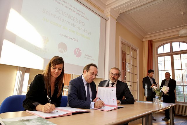 Le 9 octobre, Pierre Bédier, Président du Département des Yvelines a signé deux conventions de partenariat pédagogique d’étude et de recherche avec Céline Braconnier, Directrice de Sciences-Po Saint-Germain. Objectif ? S’appuyer sur l’expertise des étudiants pour évaluer l’action départementale.