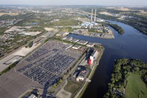 78 Yvelines Région Île-de-France / Limay: La zone portuaire / La centrale thermique EDF de Porcheville et la Seine en arrière plan | 78M_082 78 Yvelines Région Ile-de-France Limay 78520 France