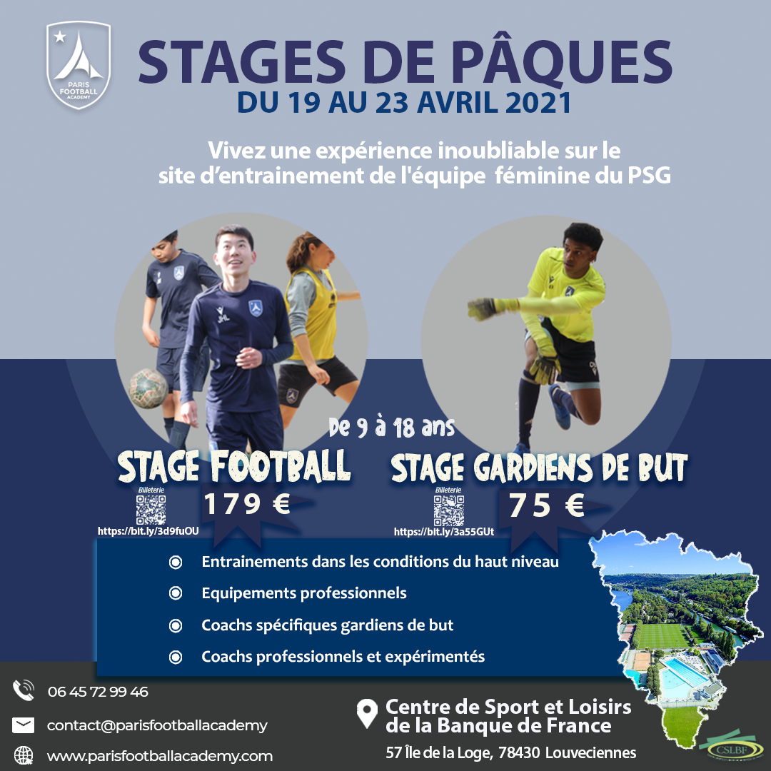 57 ILE DE LA LOGE 78 430 LOUVECIENNES 57 ILE DE LA LOGE,LOUVECIENNESPARIS FOOTBALL ACADEMY a le plaisir de vous accueillir durant ces vacances de Pâques sur les terrains du Centre Sportif et de Loisirs de la Banque de France, site officiel d’entraînements des féminines du PSG. C’est dans ce cadre exceptionnel que votre enfant pourra pratiquer durant 5 jours, sa passion dans des conditions du haut niveau avec des coachs professionnels, expérimentés et surtout passionnés. N’hésitez plus une seule seconde, […]