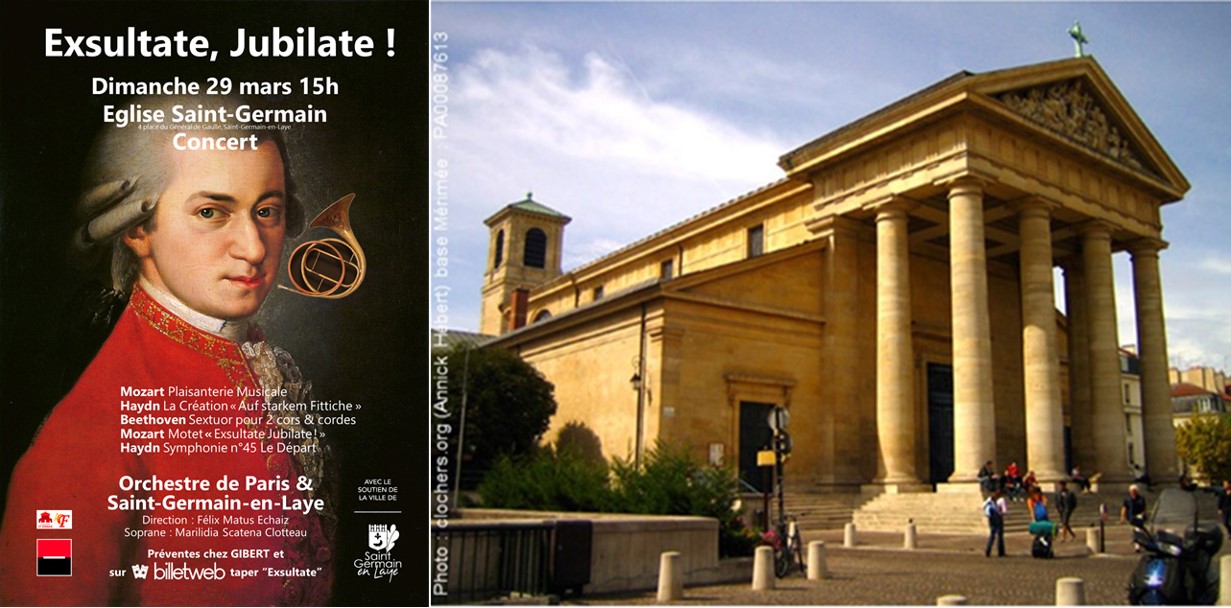 Eglise Saint-Germain Place Charles De Gaulle,Saint-Germain-en-LayeCONCERT ! Le nouvel Orchestre de Paris & Saint-Germain-en-Laye vous présente ses premiers Concerts. Ses musiciens expliqueront au public un magnifique programme sur la joie qui inspira les grands maîtres classiques. L’orchestre donnera la Plaisanterie Musicale où Mozart se moque habilement des mauvais compositeurs, une pièce brillante où Beethoven fait rire les cors, un célèbre motet de Mozart […]