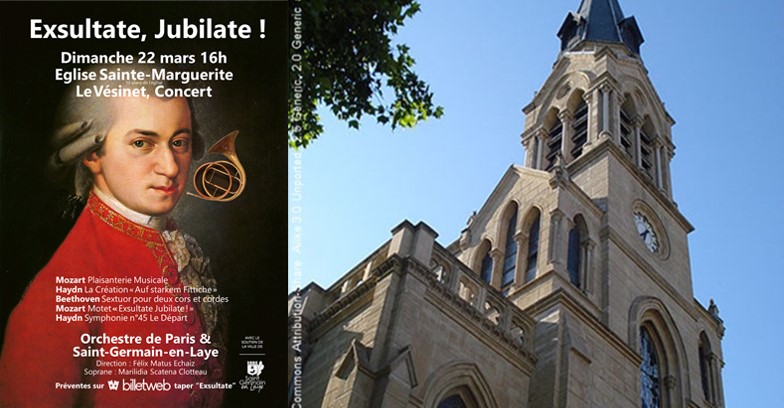 eglise sainte-marguerite 10 Place de l'Église,Le VésinetCONCERT ! Le nouvel Orchestre de Paris & Saint Germain en Laye vous présente ses premiers Concerts. Ses musiciens expliqueront au public un magnifique programme sur la joie qui inspira les grands maîtres classiques. L’orchestre donnera la Plaisanterie Musicale où Mozart se moque habilement des mauvais compositeurs, une pièce brillante où Beethoven fait rire les cors, un célèbre […]