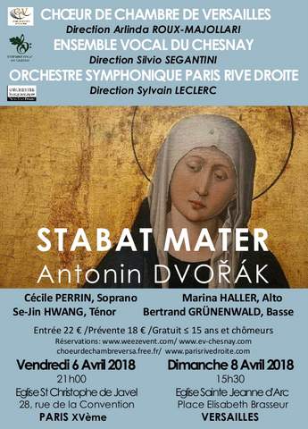 Eglise Ste Jeanne d'Arc Place Elisabeth Brasseur,VERSAILLESLe Choeur de Chambre de Versailles (dirigé par Arlinda Roux-Majollari, l'Ensemble Vocal du Chesnay (dirigé par Silvio Segantini) et l'Orchestre Symphonique Paris Rive Droite (dirigé par Sylvain Leclerc) interprètent l'incontournable Stabat Mater de Dvořák. Composé en 1877, suite à la mort de trois de ses enfants , Antonin Dvořák écrit sa première partition sacrée. Ancrée dans la douleur […]