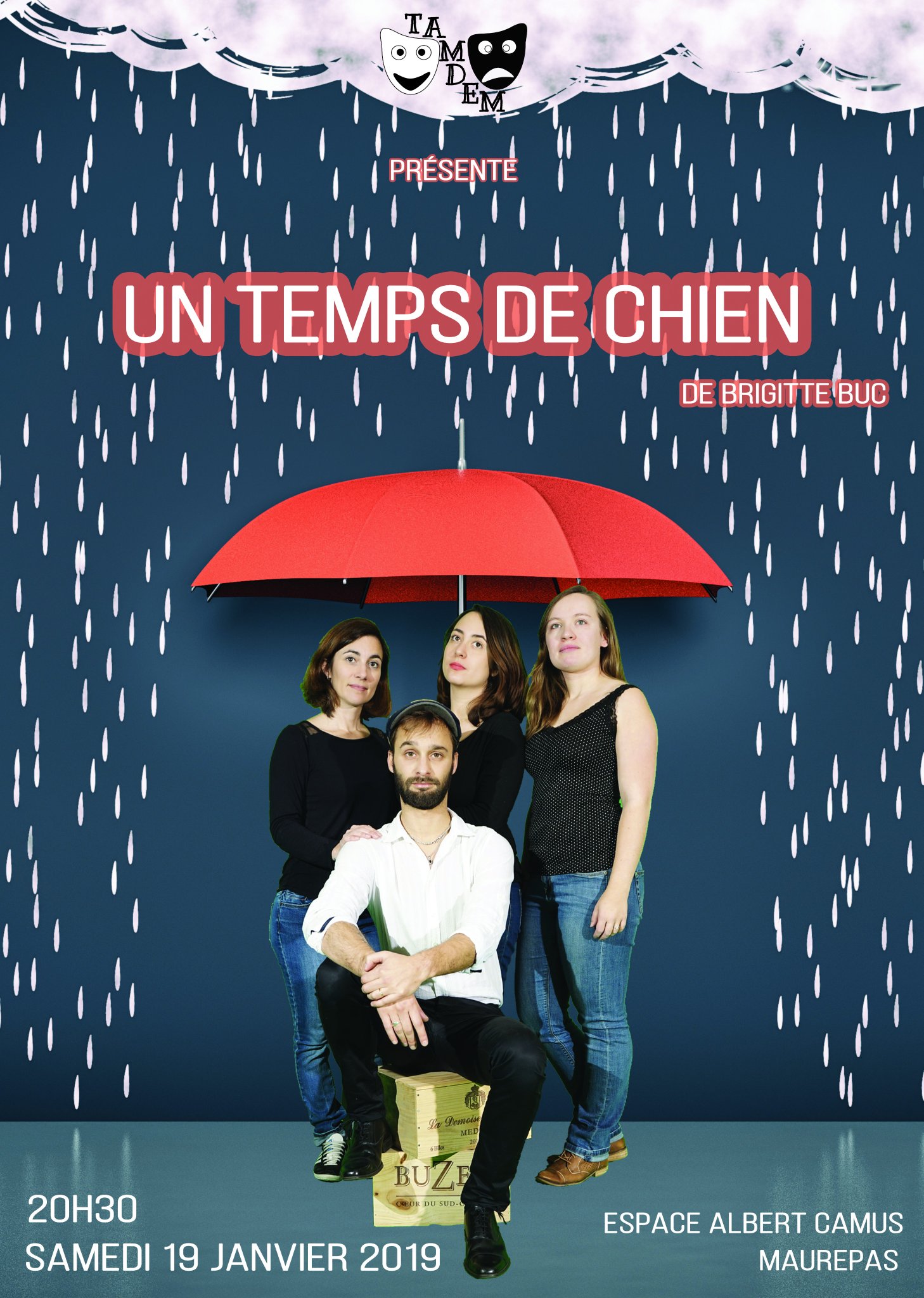 Espace Albert Camus // Maurepas 4 rue de la beauce,MaurepasUne idée de sortie pour samedi soir ? La compagnie Tamdem vous présente sa pièce "un temps de chien" ce samedi 19 janvier à 20h30 à l'Espace Albert Camus. Résumé : Par une journée pluvieuse, trois femmes se retrouvent dans une arrière-salle de café. Trois figures, une mère de famille au bout du rouleau, une jeune vendeuse […]
