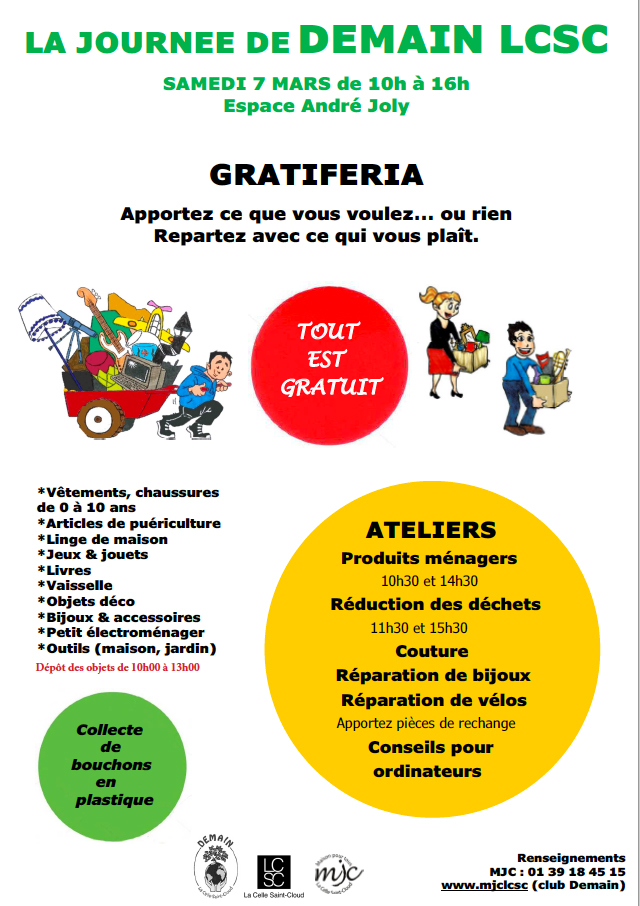 ESPACE ANDRE JOLY Place Du Jumelage,LA CELLE SAINT CLOUDTout le monde veut sauver la planète mais personne ne veut descendre les poubelles, Jean Yanne ???? APPORTEZ, EMPORTEZ, ÉCHANGEZ ET VENEZ NOUS RENCONTRER AUTOUR D'UN CAFÉ ! ☕️ Appendre les bon gestes pour la planète fait aussi partie de vos résolutions ? ? Pour nous aider, le Collectif DEMAIN LCSC vous invite à une […]