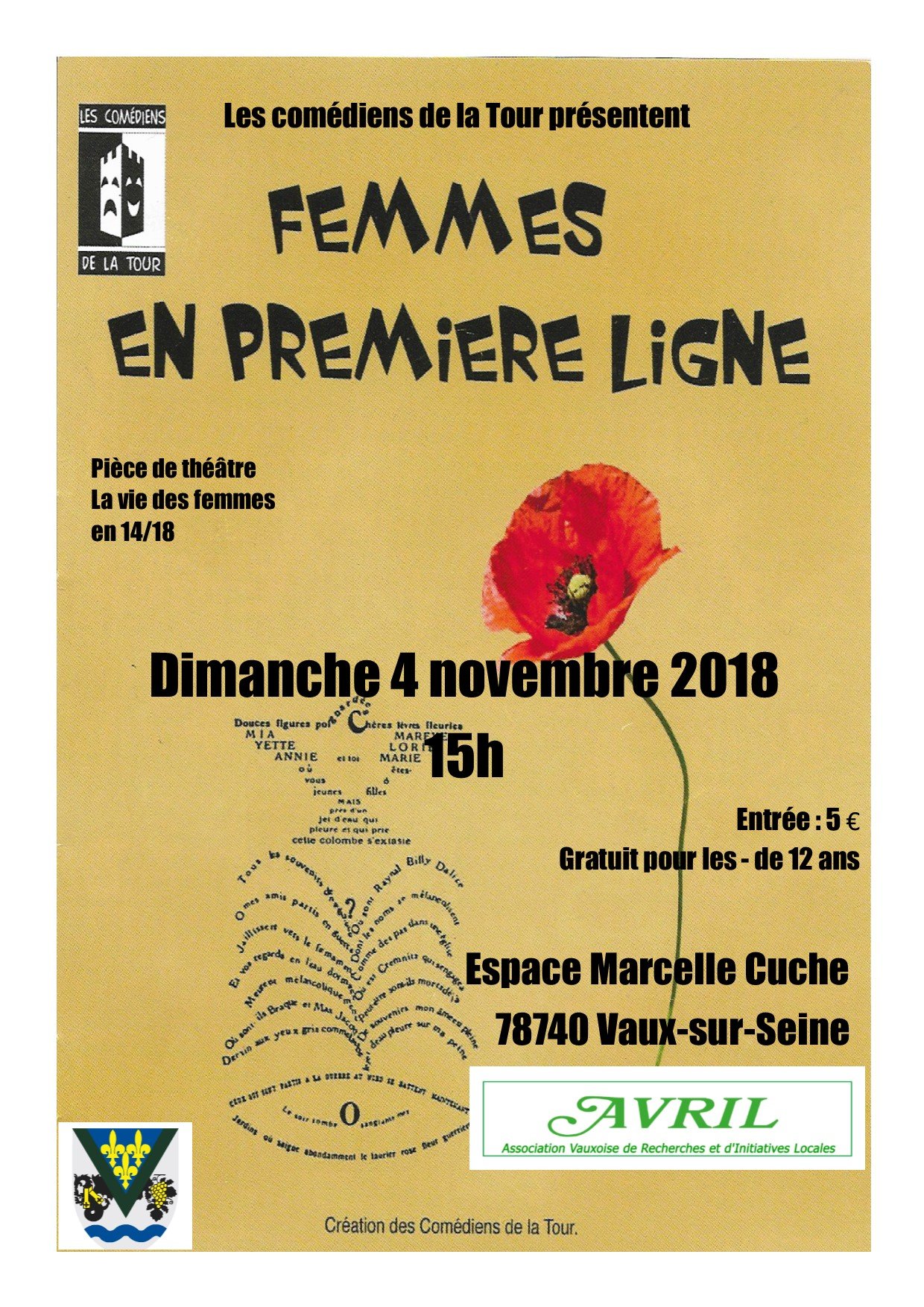 Espace Marcelle Cuche 89 rue du Général de Gaulle,Vaux sur SeineL'association AVRIL présente « FEMMES EN PREMIERE LIGNE » Les Comédiens de la Tour et l 'association vauxoise AVRIL rendent hommage aux oubliées de 14/18 : ces femmes qui furent envoyées au front ou palièrent l'absence des hommes, à la ville et à la campagne. De saynètes en chansons, ce spectacle vif et sensible honore […]