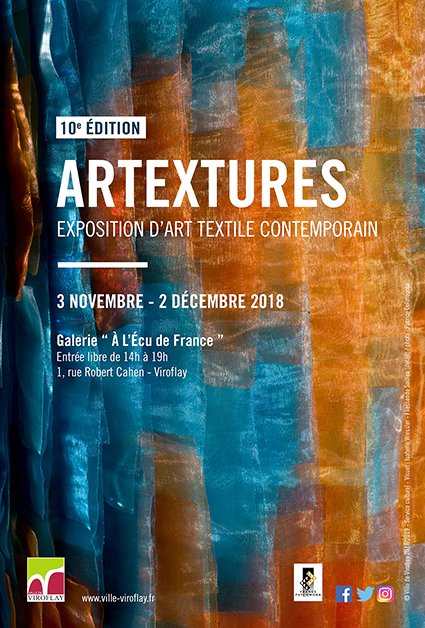 GALERIE A L'ECU DE FRANCE 1, rue robert Cahen,ViroflayDu 3 novembre au 2 décembre, la ville de Viroflay invite « Artextures », exposition majeure dédiée à l’art textile qui pour sa 10ème édition, présente une trentaine d’œuvres d’artistes plasticiens internationaux mêlant créativité et innovation. Pour célébrer cette exposition anniversaire, La galerie A l’Ecu de France propose au public, avec le concours de l’association […]
