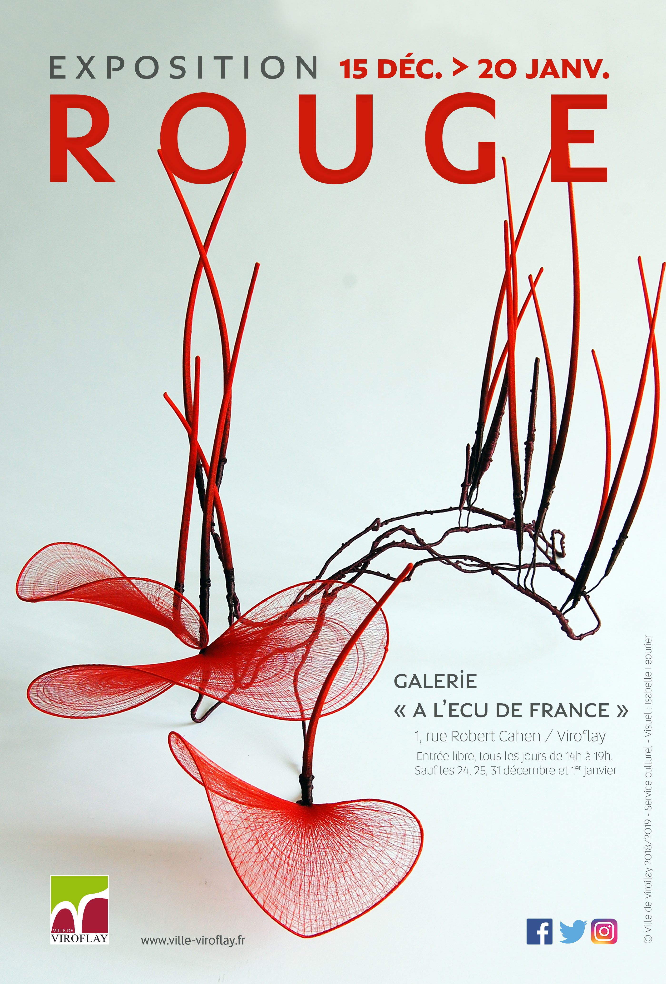 GALERIE A L'ECU DE FRANCE 1, rue robert Cahen,ViroflayLa Ville présente du 15 décembre au 20 janvier à la galerie à l’Ecu de France, une exposition thématique d’art contemporain autour du rouge à travers le travail de sept artistes plasticiennes. « Le rouge est la première couleur que l’homme a maîtrisée, fabriquée, reproduite, déclinée en différentes nuances, d’abord en peinture, plus tard […]