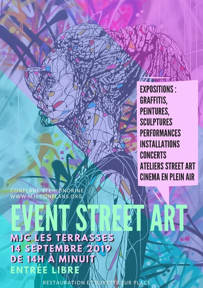MJC Les Terrasses Avenue du Pont,Conflans St HonorineExposition, performances, ateliers street art, concert, cinéma La saison 2019-2020 s'ouvre avec un grand événement Street Art. Dans une scénographie ouverte et spécialement conçue pour le parc de la MJC Les Terrasses, une trentaine d'artistes s'emparent du lieu en extérieur et en intérieur pour une invitation à l'immersion totale avec l'image, l'individu et la réalité […]