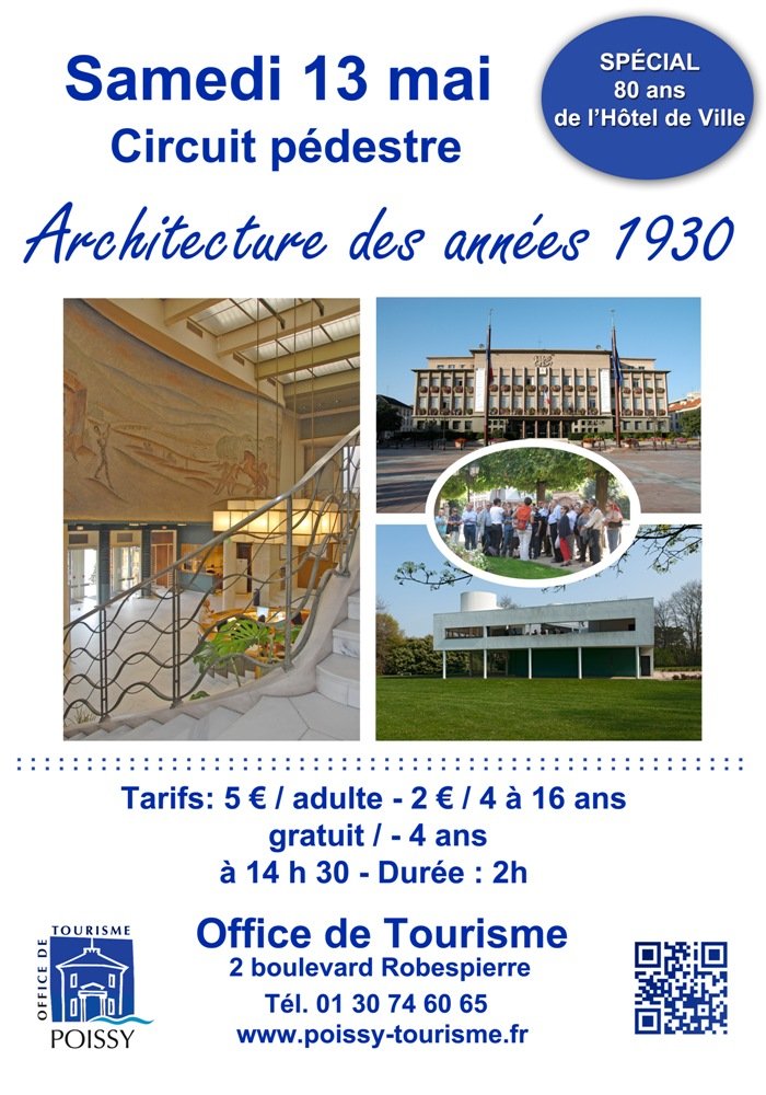 Office du tourisme de Poissy 2 boulevard Robespierre,PoissyPour célébrer les 80 ans de l’hôtel de ville de Poissy, l’office de tourisme vous propose un tout nouveau circuit pédestre autour de « l’Architecture des années 1930 » ! Votre guide vous conduit pas à pas dans les rues de Poissy et vous raconte l’évolution urbaine de cette époque ! Au programme : l’hôtel de ville et son […]