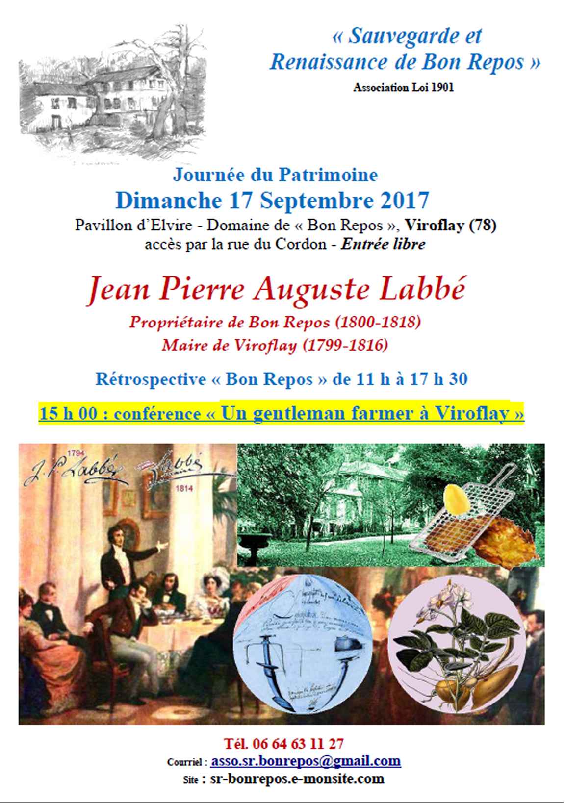 Pavillon d'Elvire, domaine de Bon Repos 7. Avenue de Versailles, entrée Rue du Cordon,VIROFLAY 78220A l'occasion des Journées du Patrimoine, venez découvrir ou redécouvrir la vie de Jean Pierre Auguste Labbé, propriétaire de "Bon Repos" (1800-1818) et Maire de Viroflay (1799-1816) sous le Consulat, l'Empire et le début de la Restauration. Natif du Calvados, Commissaire à l'administration de l'Habillement sous la Révolution, industriel, mais aussi poète, agriculteur, éleveur...etc... C'est […]