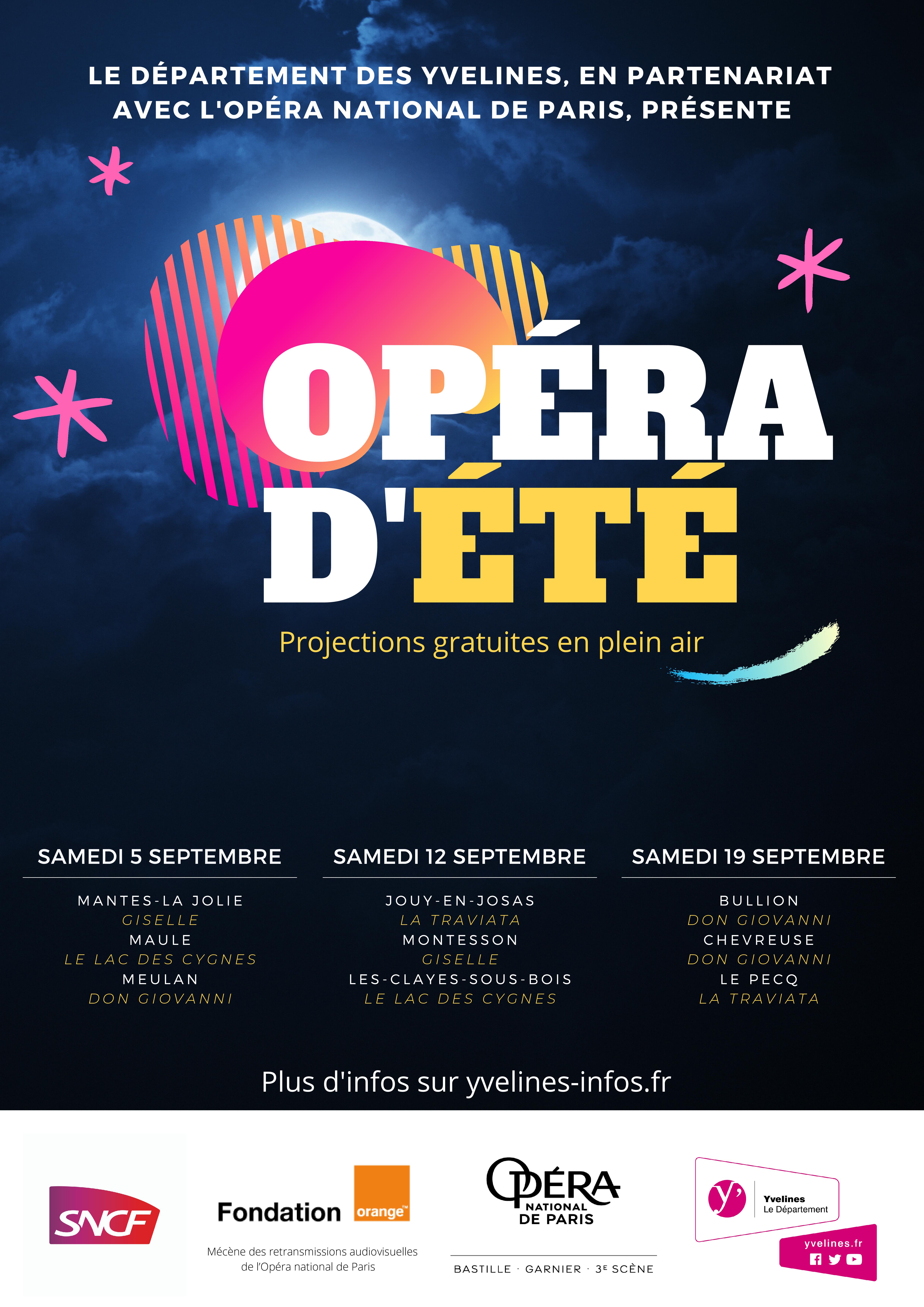 square Brieussel Bourgeois Square Brieussel-Bourgeois,Mantes-la-JoliePour la deuxième année consécutive, le Département des Yvelines, en partenariat avec l'Opéra national de Paris, proposera en septembre l'opération Opéra d'été. Giselle Ballet en 2 actes (1841) Musique : Adolphe Adam Livret : Théophile Gautier et Jules-Henri Vernoy de Saint-Georges Durée : 1h40 Ballet romantique par excellence, Giselle marque l'apogée d'une nouvelle esthétique. Tutus […]