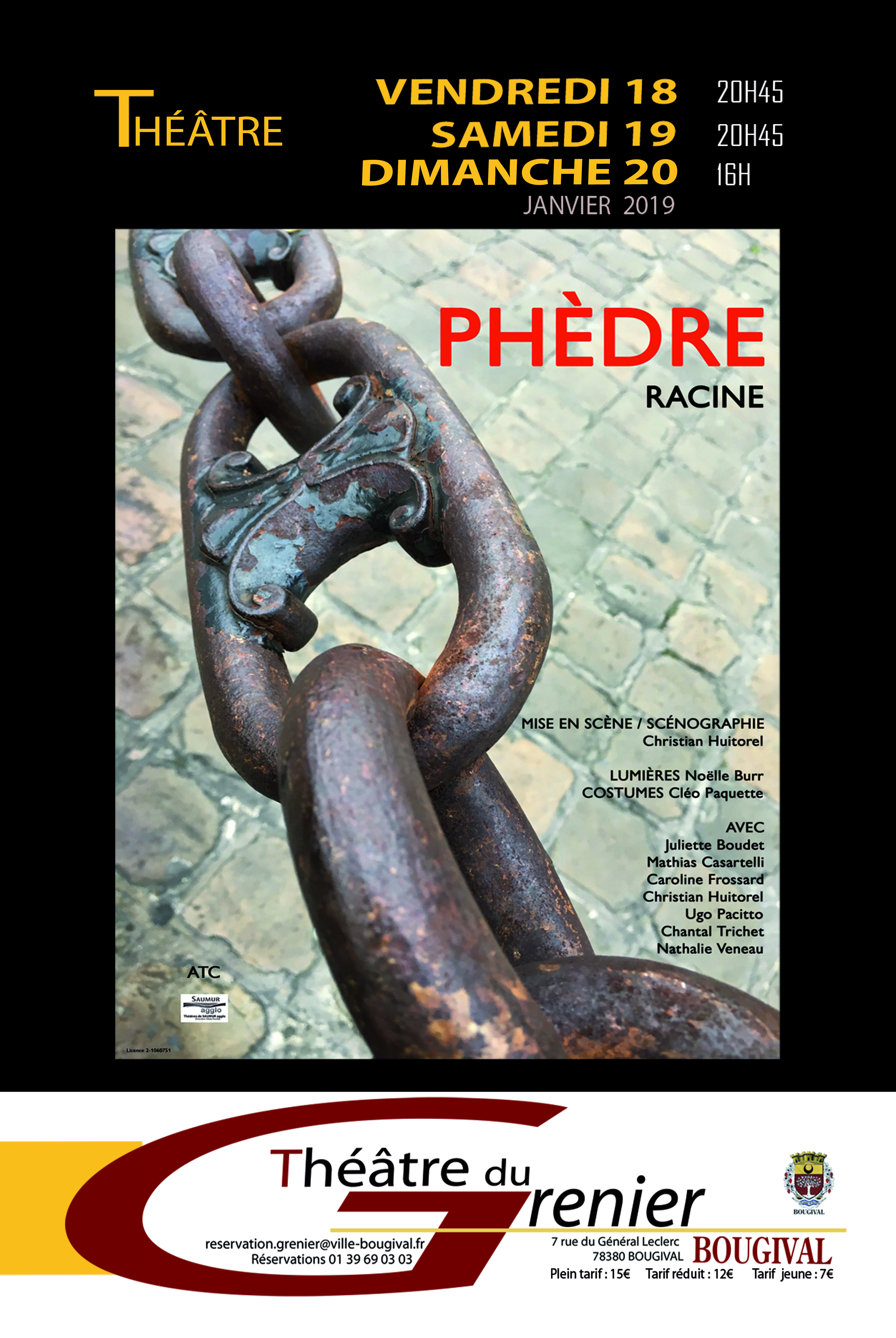 Théâtre du Grenier de Bougival 7 rue du Général Leclerc,Bougivalde Jean Racine. « J’aime. Ne pense pas qu’au moment que je t’aime, Innocente à mes yeux, je m’approuve moi-même. » Phèdre, II, 5. Phèdre, c’est l’héroïne humainement tragique, victime lucide de sa coupable passion amoureuse, ravagée par la honte et rongée par la jalousie. C’est dans cette lucidité qu’elle garde malgré tout, que Phèdre […]