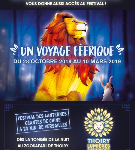 ZooSafari de Thoiry Rue du Pavillon de Montreuil,ThoiryThoiry comme vous ne l’avez jamais vu avec cette nouvelle attraction Thoiry Lumières Sauvages ! 600 sculptures lumineuses géantes, tout droit venues de la culture traditionnelle chinoise, et offriront un voyage féerique à la découverte de la Chine, de ses traditions séculaires et d’un monde animalier extraordinaire. De la Chine à Thoiry, il n'y a qu'un […]