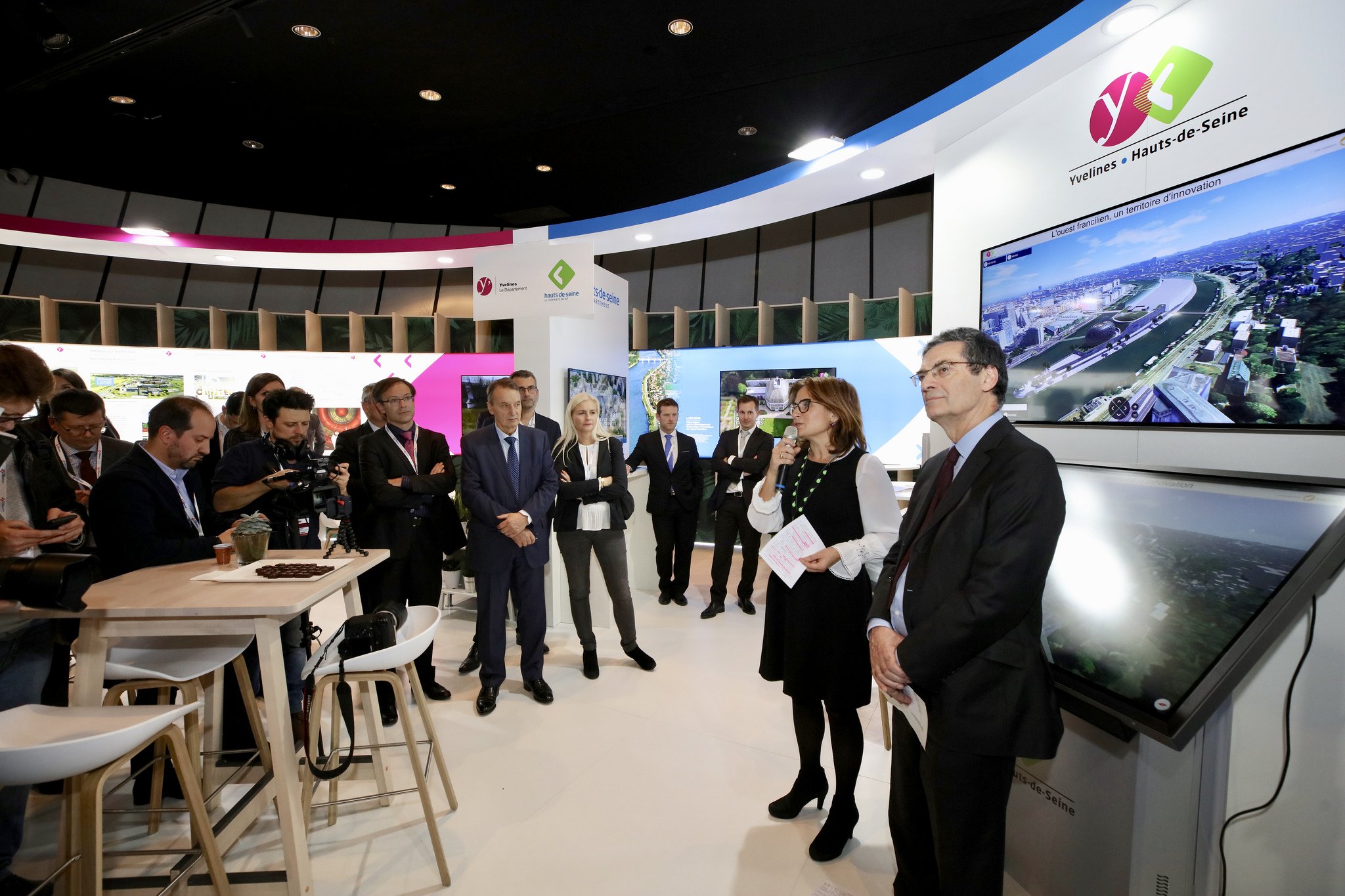 Mercredi 5 décembre, Patrick Devedjian, Président du Conseil départemental des Hauts-de-Seine et Marie-Célie Guillaume, vice-présidente départementale des Yvelines et directrice générale de Paris La Défense, ont inauguré le stand commun aux deux départements au SIMI.