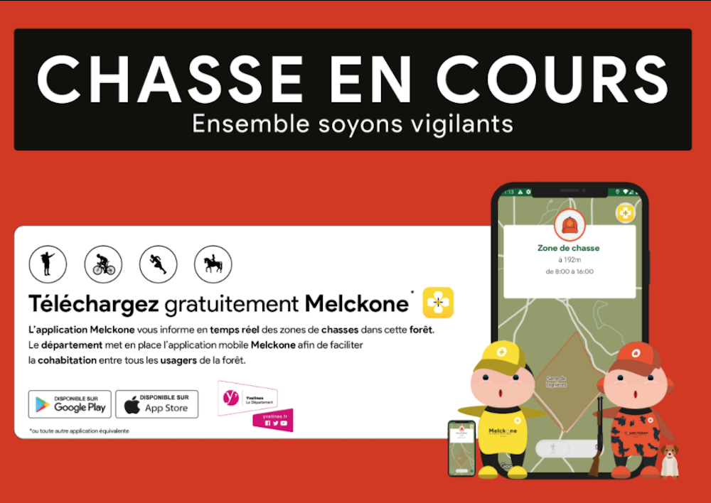 Se promener sereinement, ne pas prendre de risque lors de vos promenades durant la période de chasse : c’est désormais possible. Il vous suffit de télécharger gratuitement l’application Melckone sur votre smartphone.