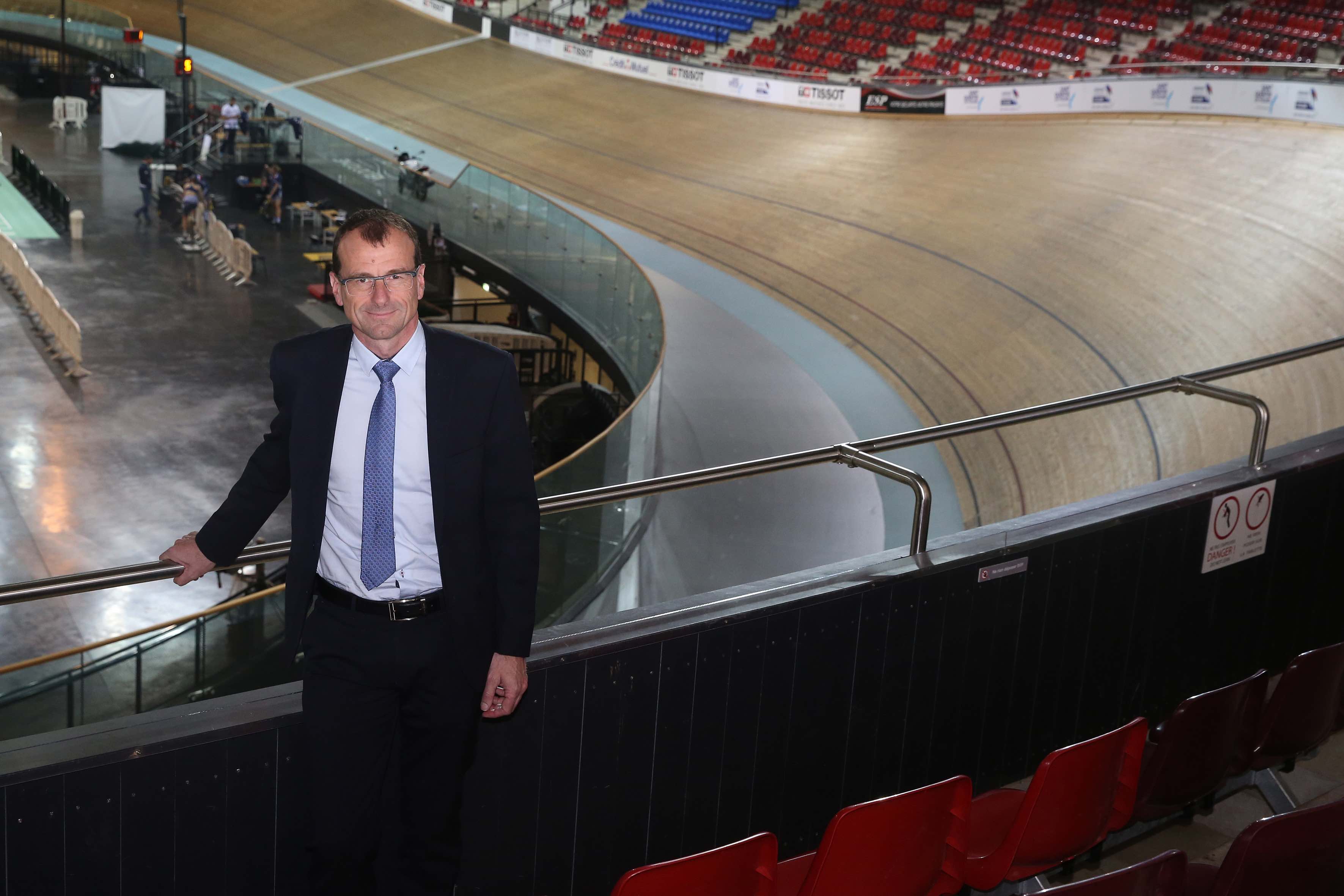 Le Président de la FFC, Michel Callot, au Vélodrome national de Saint-Quentin-en-Yvelines. Photo : FFC/P.Pichon