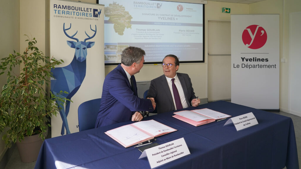 La signature du contrat de développement entre Rambouillet Territoires et le Département des Yvelines. ©Rambouillet Territoires/ Michaël Bourguelle