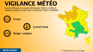 À partir de mardi 9 février 2021, 8 départements français, dont Paris et toute l’Ile-de-France, sont en alerte orange pour grand froid, neige et verglas.