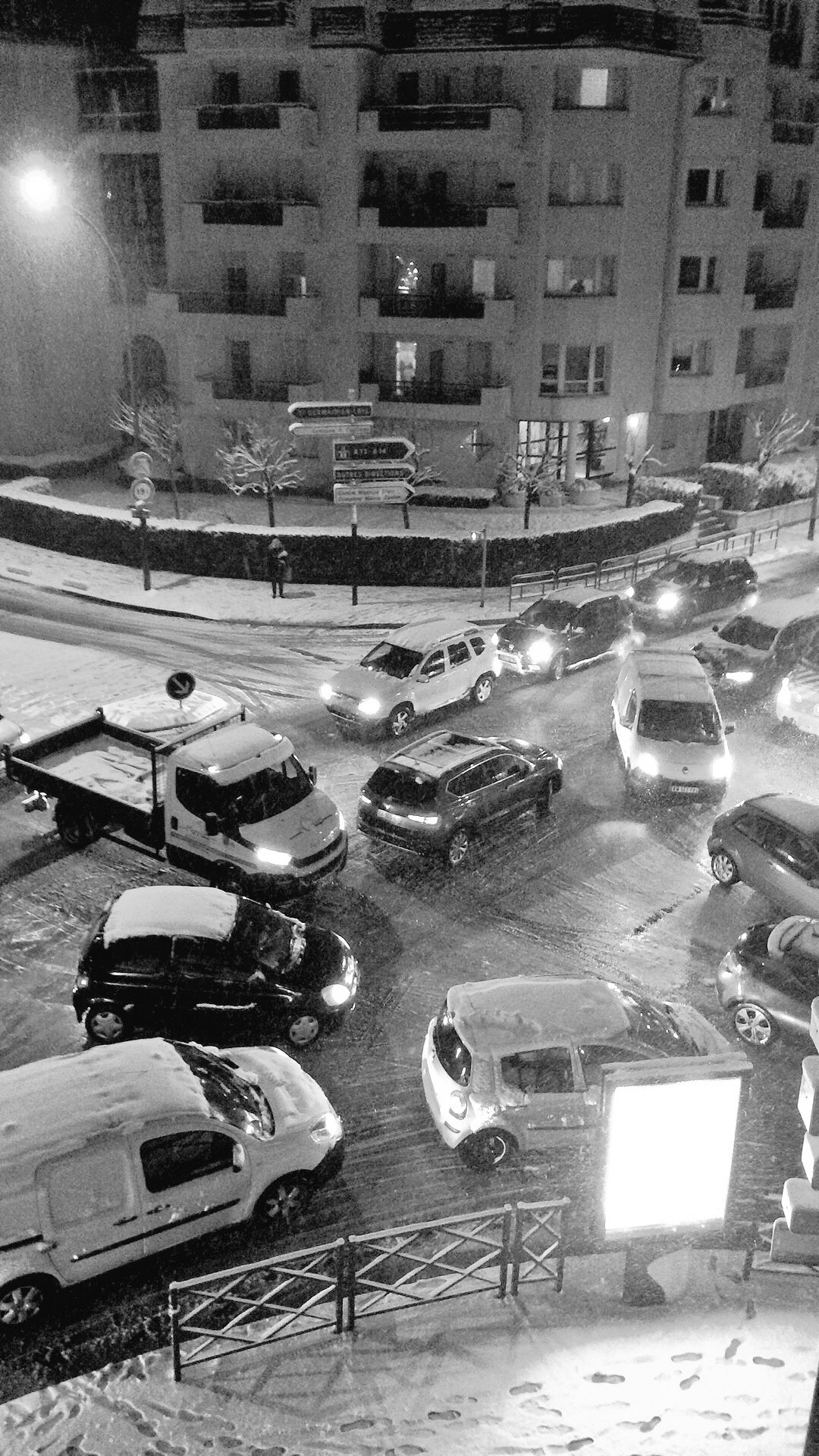Vendredi 9 février, 9h, après la fonte de jeudi, retour de la neige et du verglas