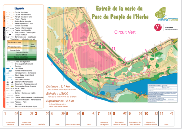 1 parcours vert adapté aux enfants, aux scolaires, aux familles et à ceux qui viennent découvrir l’orientation. Les postes sont proches des chemins.