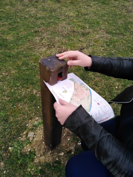 La course d’orientation est une activité de loisir qui consiste à découvrir des balises situées sur le terrain, par le cheminement de son choix, en se servant d’une carte et éventuellement d’une boussole. Les balises représentées par des bornes en bois agrémentées d’un numéro (comme sur la photo ci-dessous) sont disposées tout au long du parcours permettant ainsi de se repérer sur le terrain et de valider le passage à la balise en y poinçonnant sa carte.