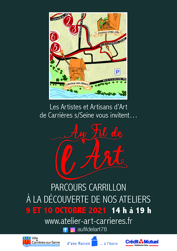 Pour la 3e année consécutive, les Artistes et Artisans d'Art de Carrières sur Seine vous invitent à visiter leurs ateliers le temps d'un week-end. Au Fil de l'Art, c'est un parcours artistique et ludique à travers le village, d'un atelier d'artiste à l'autre avec une énigme pour petits et grands. Venez découvrir notre belle ville et […]