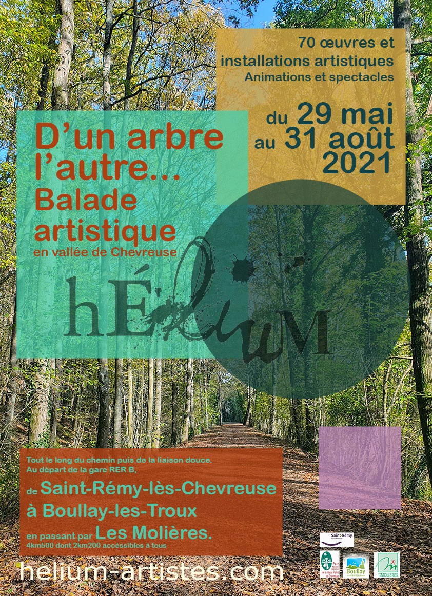 Gare RER Route de Limours 78470 Saint-Rémy-lès-Chevreuse Route de Limours,Saint-Rémy-lès-ChevreuseL'association Hélium organise un événement en plein air du 29 mai au 31 août 2021, comme une alternative aux expositions traditionnelles, dans l'urgence d'agir pour les artistes et le public en ces temps de privation culturelle. Depuis la Gare du RER B de Saint-Rémy-lès-Chevreuse jusqu'à Boullay-les-Troux, en passant par Les Molières, l'ancienne voie ferrée (Ligne […]