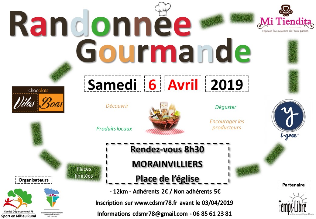 Morainvilliers Place de l'église,MorainvilliersAmi(e)s randonneu(ses)rs, La prochaine étape de randonnée gourmande se déroulera Samedi 6 avril 2019 au départ de Morainvilliers (mairie). L’occasion d’allier activité physique et plaisir gustatif dans une ambiance conviviale. Vous découvrirez ainsi des saveurs locales sur un parcours de 12km. Attention, pour une question d’organisation, nous limitons la randonnée à 100 participants. Infos et […]