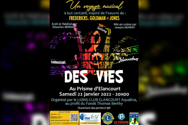 Le Prisme Elancourt Centre des 7 Mares,ElancourtSpectacle musical sur la base de chansons de Carole Fredericks, Mickael Jones et Jean Jacques Goldman. Il raconte l'histoire d'une Sud-Africaine, d'un Polonais et d'un Nord-Irlandais qui décident de changer de vie, de quitter leur pays pour vivre leur rêve. Le hasard des voyages va faire qu'ils vont se rencontrer dans une auberge de jeunesse, […]