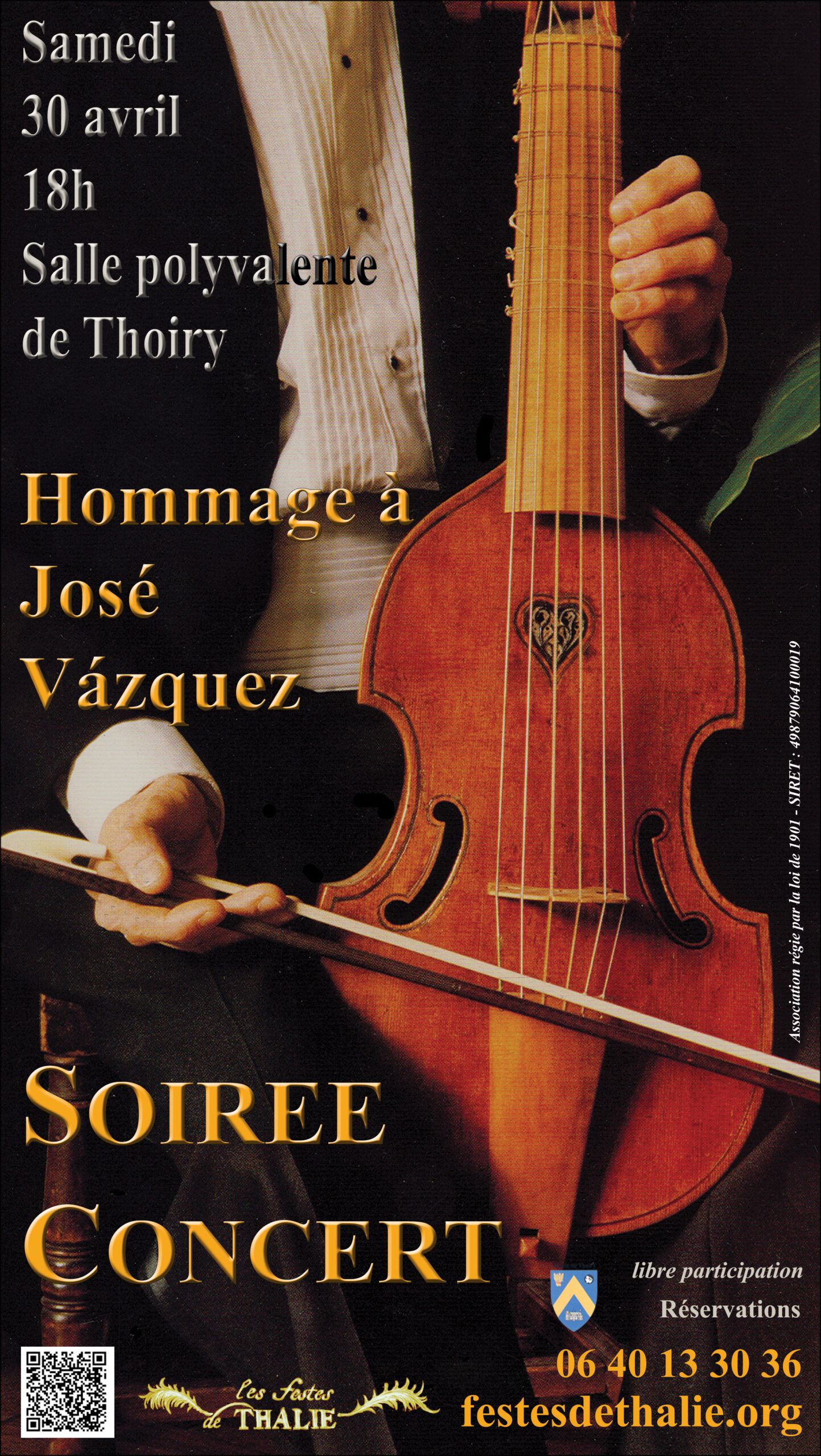 Salle polyvalente de Thoiry 13 Rue des Vignettes,ThoirySi les conditions sanitaires le permettent, et dans le respect de la réglementation en vigueur, de nombreux musiciens amis de José Vázquez se retrouveront dans la salle polyvalente de Thoiry pour lui rendre hommage lors d’une soirée-concert le 30 avril 2022 à partir de 18h. Pour préparer cette soirée musicale, un stage de musique baroque […]