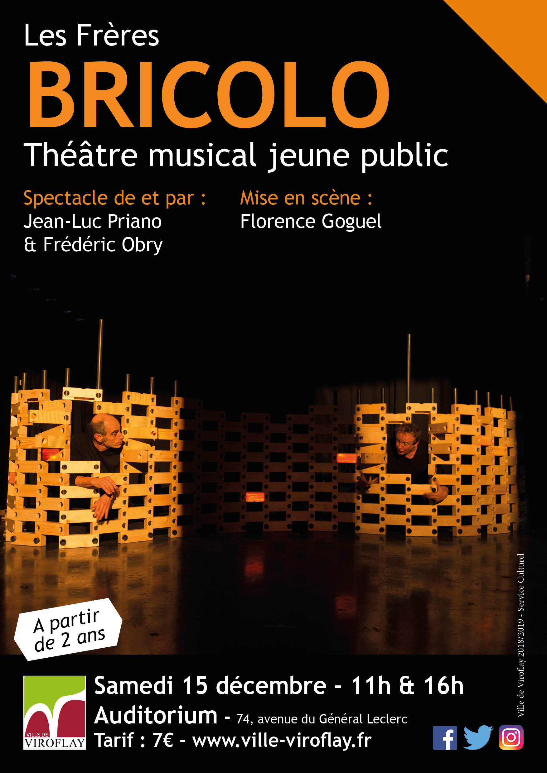 Théâtre musical à partir de 2 ans de et par Frédéric Obry et Jean Luc Priano. Mise en scène : Florence Goguel. Au beau milieu d’une construction en perpétuel mouvement, dans un univers sonore à l’architecture surprenante, ils se jouent des murs, dansent avec les mots, faisant sonner briques, ardoises et tuyaux.