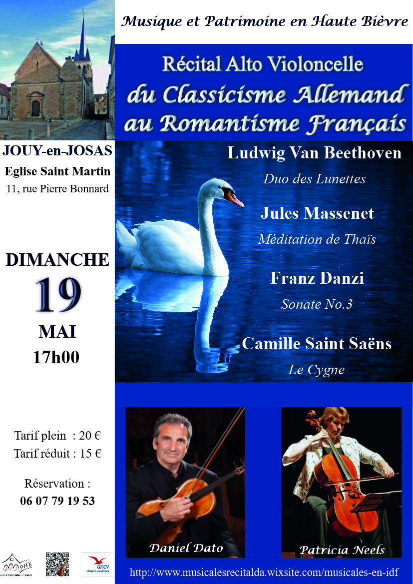 Eglise Saint Martin 11 rue Pierre Bonnard,Jouy-en-JosasAvec Patricia Neels et Daniel Dato vous êtes conviés à un voyage musical à travers les œuvres de grands compositeurs classiques et romantiques. De Beethoven à Jules Massenet ou Camille Saint-Saens, venez découvrir ou redécouvrir quelques grandes mélodies : la Méditation de Thais, le Cygne du Carnaval des Animaux et quelques airs tziganes célèbres pour […]