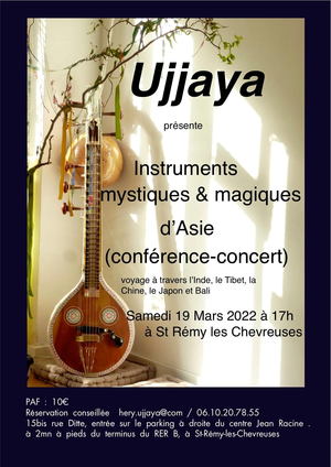Espace Jean Racine Rue Ditte,Saint Rémy les ChevreuseAprès son sleep concert magique au 15bis rue Ditte, à St Rémy-les-Chevreuse, Ujjaya y fera une conférence-concert sur les instruments mystiques et magiques d'Asie. Le concert, en guise de voyage musical mélangera la musique ambient avec des instruments rituels asiatiques : conque indienne, veena d'Inde du Sud, kangling (flûte en tibia tibétaine), qin chinois, gong […]