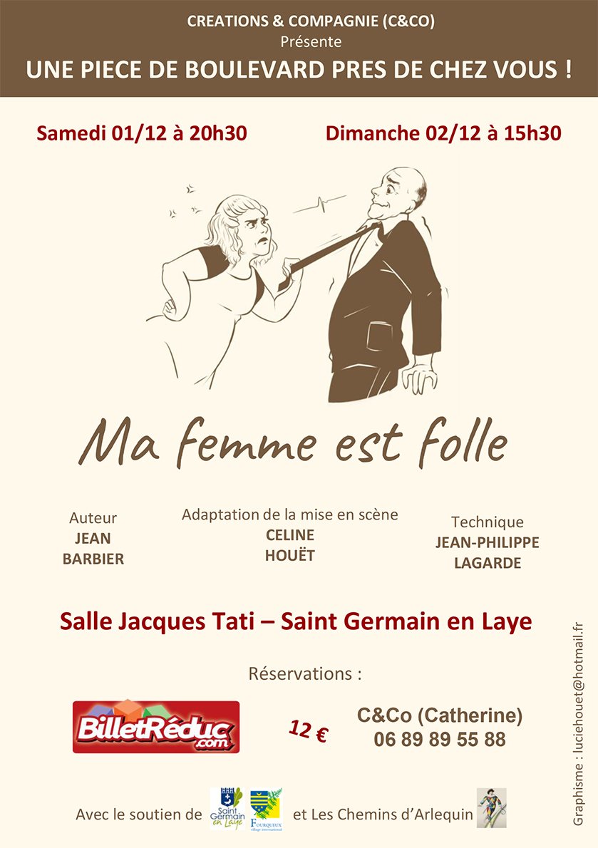 Salle Jacques Tati, Saint-Germain-en-Laye 12 rue Danès de Montardat,Saint-Germain-en-LayeReprésentations théâtrales de la troupe Créations & Compagnie les samedi 1er décembre à 20h30 et en matinée le dimanche 2 décembre à 15h30. "Julien Valadier fait fortune en vendant des systèmes informatiques... Un jour, son ex-femme apprend la nouvelle, son mari est désormais un homme riche ! Elle débarque et tente d'en profiter. Mais lorsque Julien refuse […]