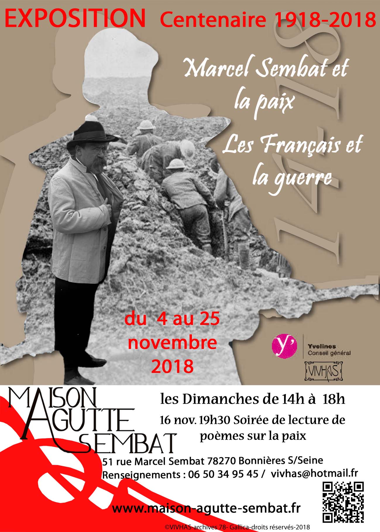 Maison Agutte-Sembat 51 Rue Marcel Sembat,Bonnières sur SeineExposition sur les traités de paix (Versailles, Trianon, St Germain et Neuilly), une présentation et l'historique de la SDN et de l'ONU, une autre partie sera consacrée à la période où Marcel Sembat fut ministre et à son pacifisme. Ouverture les dimanches uniquement