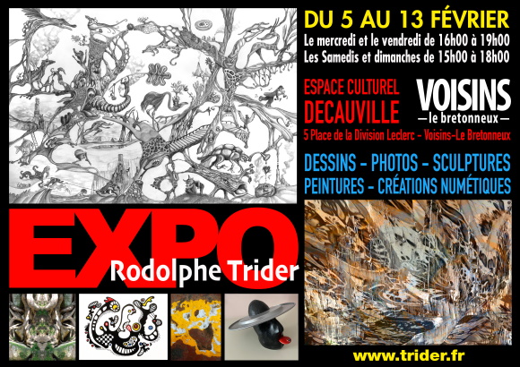 Espace Culturel Decauville - Salle de la Tour 5 Pl. de la Division Leclerc,Voisins-le-BretonneuxRodolphe Trider, qui n'est pas à sa première exposition dans les salles vicinoises, nous présentera différentes techniques : Une série de dessins au crayon (Fantasmagories) dans un style singulier et surréaliste, foisonnant de détails et de petites histoires, propres à stimuler l'imagination de l'observateur, Une sélection de créations numériques (PixArt), Des photos abstraites (Révélations) propres […]