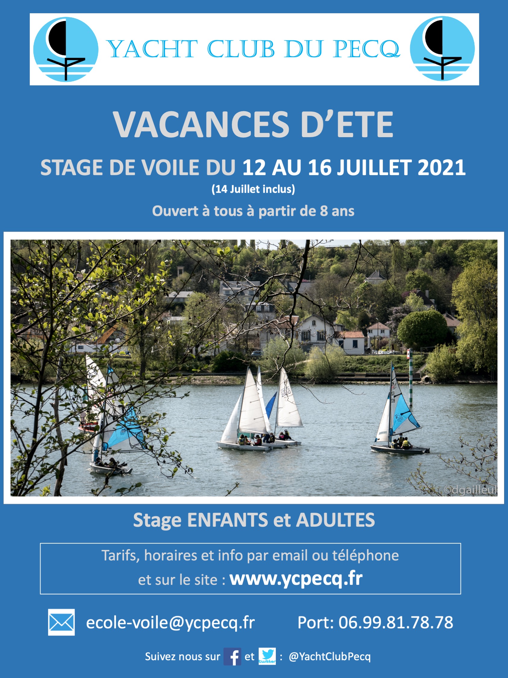 Yacht Club du Pecq 1 bd de la Libération,Le PecqLe Yacht Club du Pecq (78230) organise une semaine de stage de voile pour enfants et adultes à partir de 8 ans, encadré par un moniteur diplômé. Débutants acceptés !