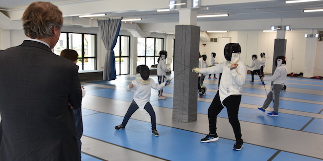 « Ces valeurs, seul le sport peut les procurer », ajoute Olivier de La Faire, conseiller départemental en charge des sports. Car l’entraînement du jour s’avère un peu spécial. En démonstration, les enfants échangent les passes d’armes sous le regard curieux de l’élu venu en visite pour découvrir le site. « Nous avons la chance dans les Yvelines, d’accueillir près de 30 centres de préparation des Jeux Olympiques », explique l’élu.