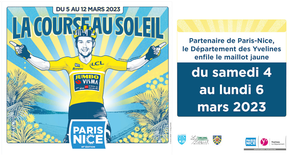 Partenaire du Paris-Nice pour la 14e année consécutive, le Département des Yvelines enfile le maillot jaune du samedi 4 au lundi 6 mars 2023.