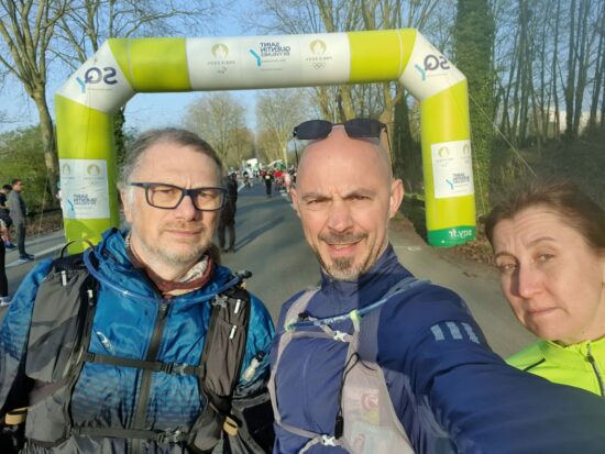 Gilles Bolya (à gauche) finisher avec des amis d’un trail yvelinois. Photo G.Bolya
