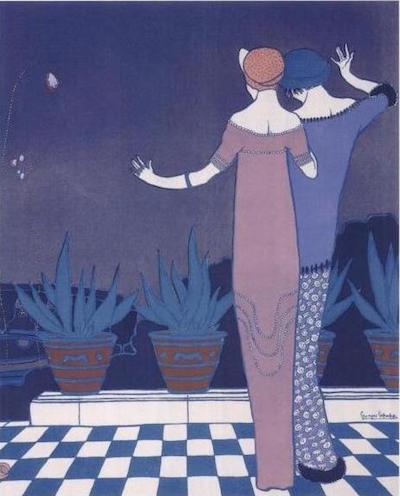 En 1910, alors que les ballets russes triomphent à Paris, Paul Poiret suit la tendance, crée des robes en tissus colorés inspirés de l’Orient, de la Russie et de l’Afrique, et lance une ligne de parfums. Il habille les comédiennes les plus en vue et le Tout-Paris ; sa femme porte le turban à aigrette et se fait ambassadrice de la marque.
