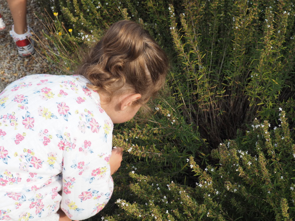 Plantes, fleurs, fruits, légumes,… Chaque recoin proposait des trésors de la nature. Pour rendre la visite ludique : petits et grands étaient invités à se déchausser car si voir un jardin est une chose, le ressentir en est une autre. Les pieds nus sur l’herbe ont rappelé des souvenirs d’enfance aux parents, tandis que les plus jeunes avaient hâte de remettre leurs chaussures (mais n’ont pas dit non à la dégustation de fruits du vergers !).