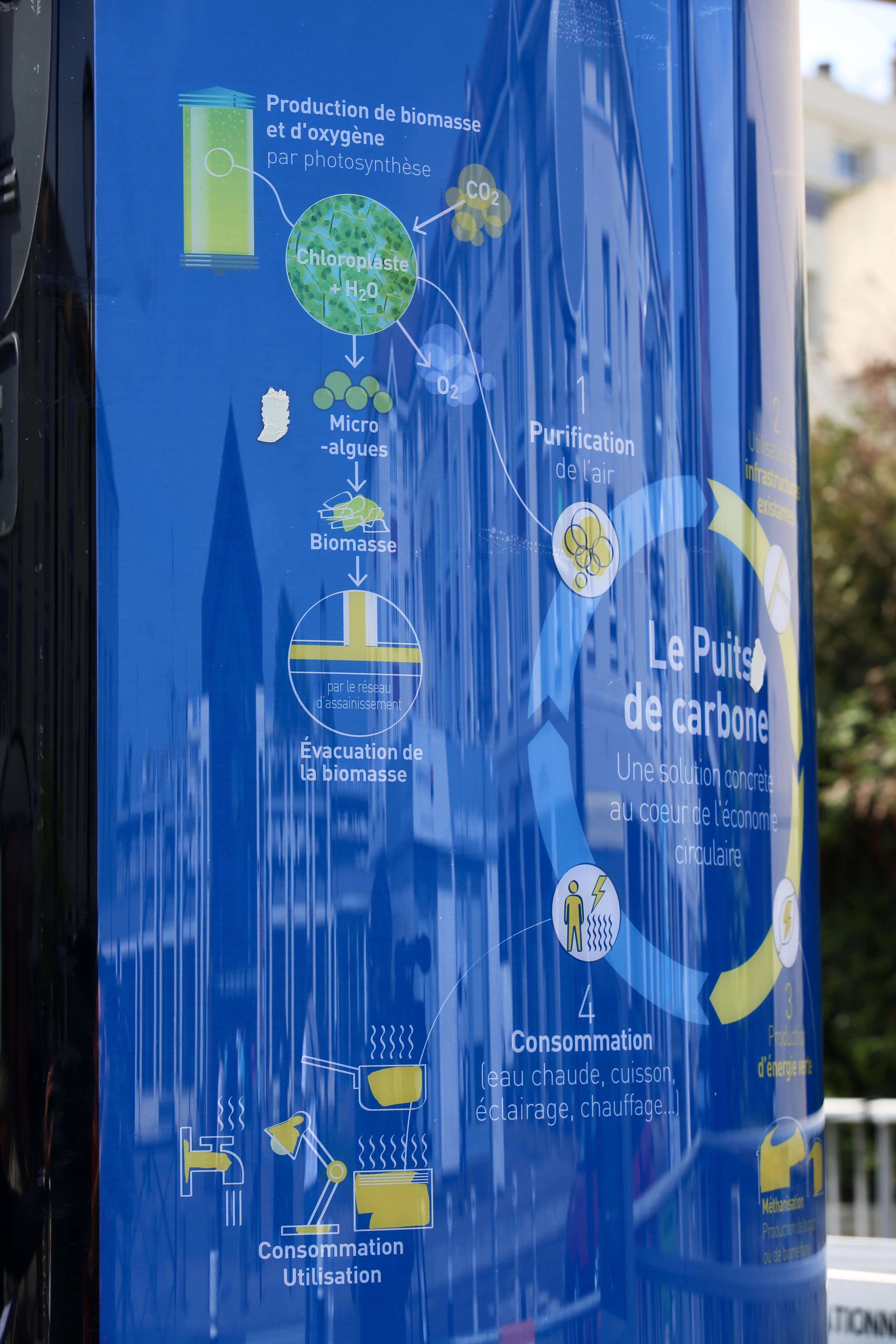 C’est grâce aux micro-algues situées à l’intérieur du puits que l’air se régénère. En effet, ces algues (au contact de l’eau) se nourrissent de l’air pollué, se reproduisent et ainsi permettent de purifier l’air. Cette technologie innovante mise en place par Suez, enverra la matière organique vers la station d’épuration des Grésillons à Triel-sur-Seine.