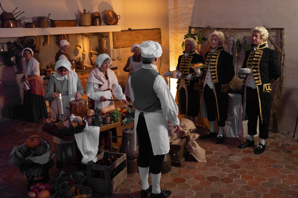 Suivez la Belle, et pénétrez-vous aussi au cœur de ce conte féerique qui a traversé les âges. Plus qu’un château, découvrez un véritable palais enchanté : un sombre souterrain, une forêt enneigée, un dîner somptueux à la lueur des chandelles… En un tour d’horloge, la Belle et la Bête vous conduisent des cuisines en pleine effervescence au bal donné sous le cristal des lustres centenaires.