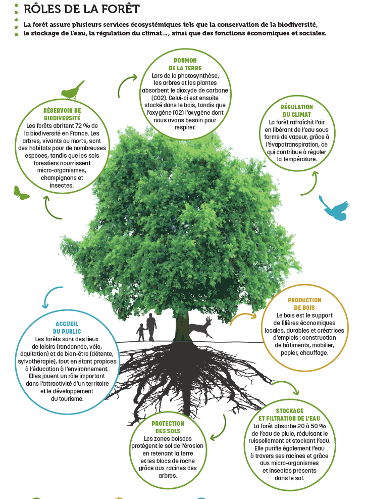 La forêt couvre 36% des Yvelines. Elle assure plusieurs services tels que la conservation de la biodiversité, le stockage de l’eau, la régulation du climat…ainsi que des fonctions économiques et sociales.