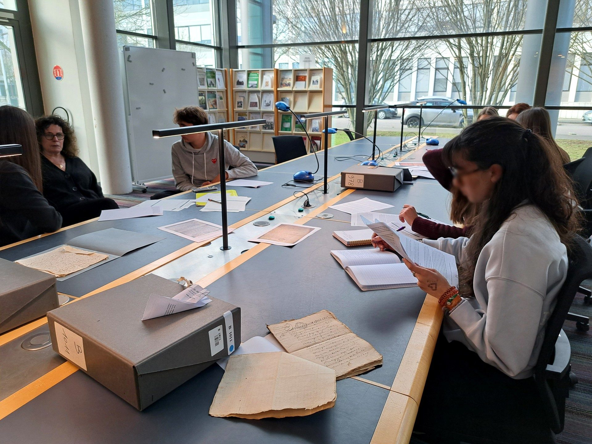 En salle de lecture des Archives départementales des Yvelines, c’est une classe du lycée de La Queue-les-Yvelines qui s’est plongée dans l’étude d’archives judiciaires dans le cadre d’un projet pédagogique nommé « Théâtre de justice ». Sur place, les lycéens sont accompagnés de Marie Peter, médiatrice culturelle, et Julien Boigné, professeur-relais présent un jour par semaine grâce à un partenariat entre les Archives et l’Éducation nationale.