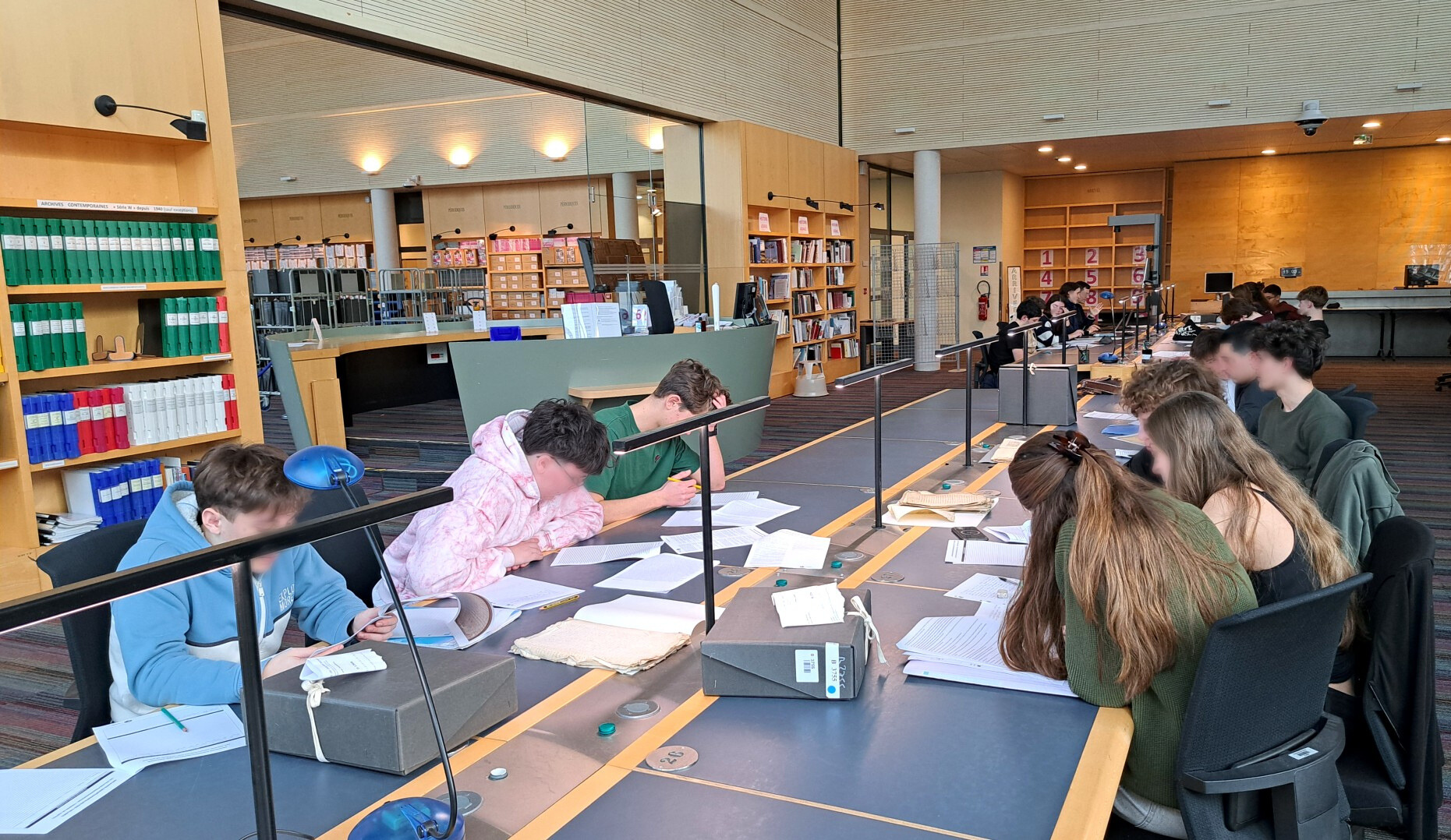Encadrés par leurs professeurs de français et d’histoire, ces élèves de première découvrent un nouveau monde. Dans la grande salle de lecture, ils sont répartis par groupe et s’attèlent à examiner des archives manuscrites relatant des affaires judiciaires vieilles de plusieurs siècles. « C’est intéressant de constater la différence entre les règles de l’époque et les nôtres en matière de justice. C’est aussi pour nous l’occasion de découvrir le rôle joué par les Archives » témoigne un groupe d’élèves penchés sur un authentique document rédigé par Louis XV en 1764.
