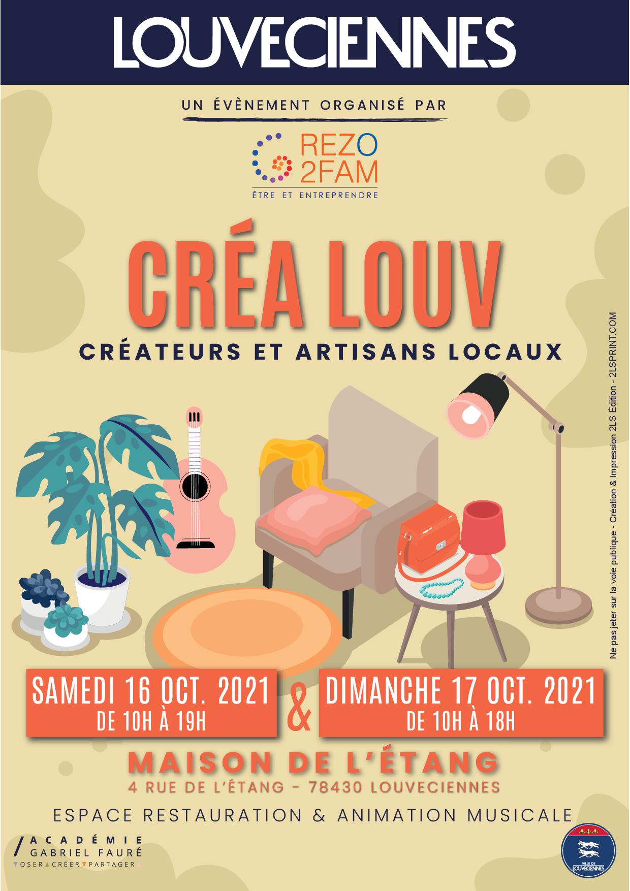 Une nouvelle exposition organisée par l’association Rezo2fam, « Créa Louv » se déroulera à Louveciennes – Maison de l’Etang les 16 et 17 octobre prochains. Cette édition regroupera des créateurs, des artisans, des professions libérales et des artistes locaux, désireux de se rassembler pour présenter un choix varié de produits et de services.